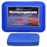 Boomhars, uitstoot van industrie, spoorroest, insektenresten, spuitnevel en teer worden zeer zorgvuldig maar effectief met behulp van een unieke reinigingskneedmassa (putty) verwijderd. Een beetje water met Premium Shampoo aanmaken en als glijmiddel voor de kneedmassa op de lak sproeien. De putty dan met zachte druk over de lak bewegen en zo de aanwezige verontreinigingen grondig verwijderen. De putty regelmatig op het opgenomen vuil controleren, en deze door opnieuw te kneden naar binnen werken. Zo ontstaat telkens weer een schoon putty. gewicht: 200 gram klik hier voor de video: http://www.petzoldts.info/Filme/magic clean Reinigungsknete.wmv Meer info